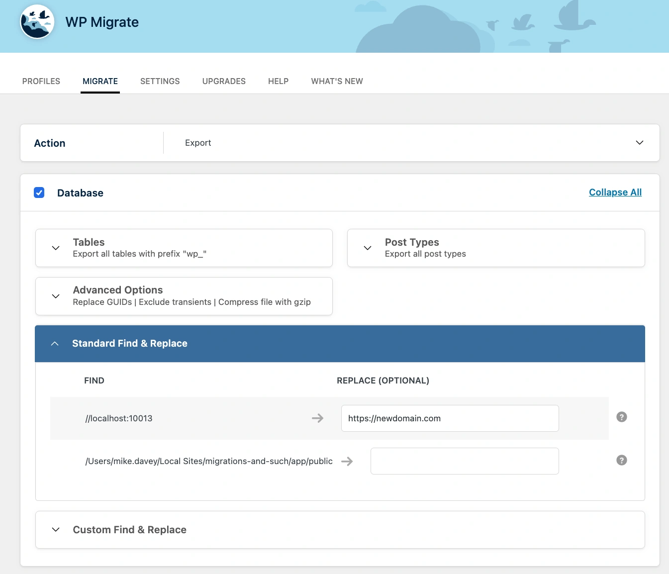 这是域名迁移中最关键的部分,因为它直接在数据库中处理将所有旧URL更新为新URL。WP Migrate Lite的智能查找和替换功能在此必不可少。
