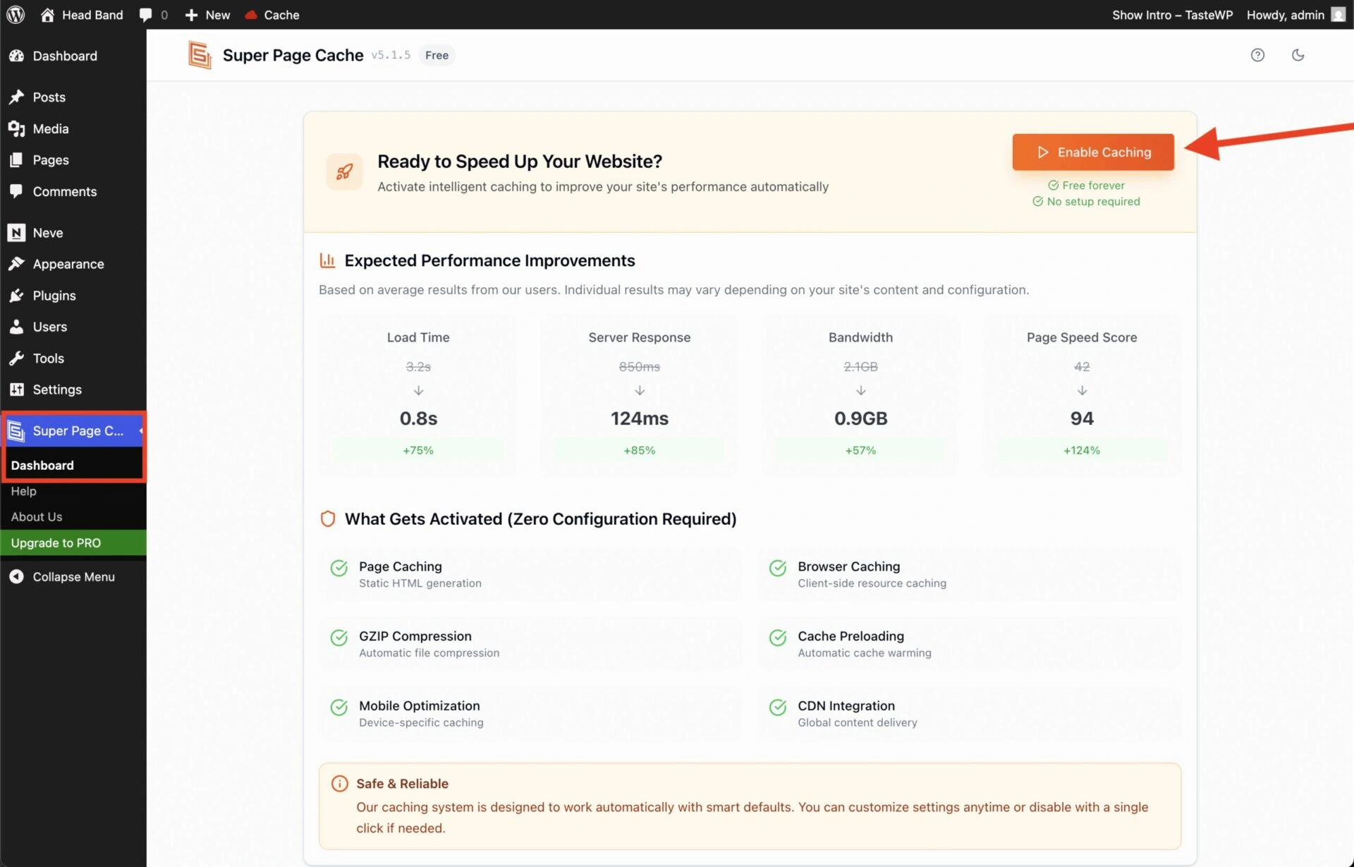 不过,如果您问我,我会推荐Super Page Cache。原因是它是一个易于使用的全能WordPress缓存插件。