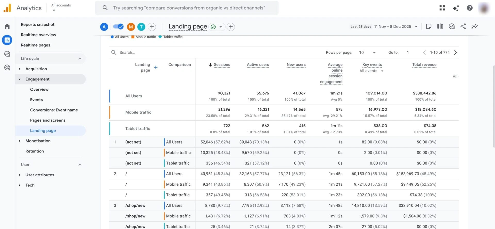 - 如果一个页面参与度好但流量低,可能需要更好的SEO或链接。