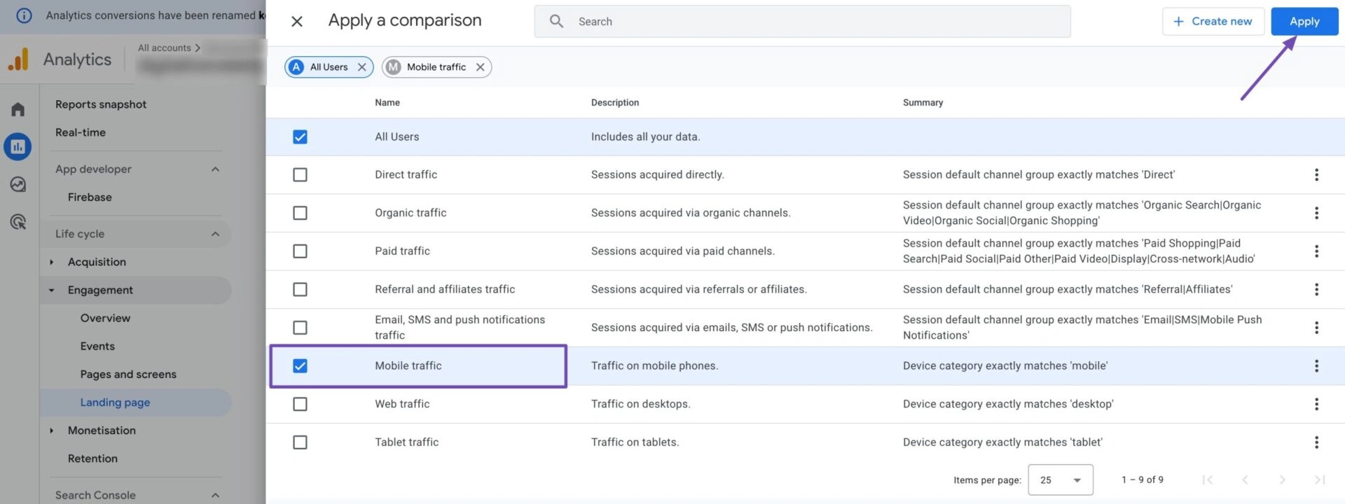 您还可以追踪设备和位置数据。为此,您可以向目标页面添加筛选条件,如下所示。