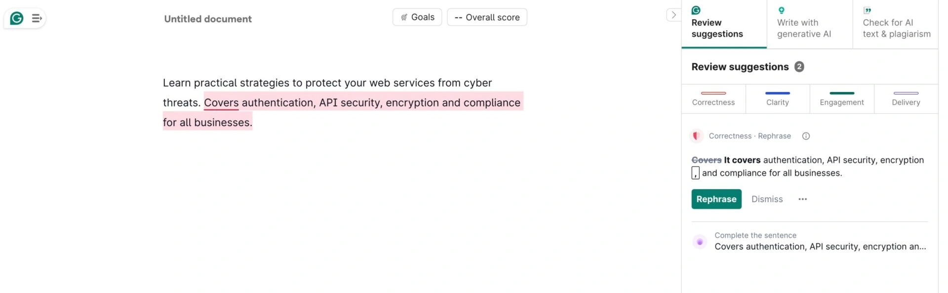 当您在Grammarly中粘贴或撰写内容时,它会检查语法错误、句子不清晰和语气问题。这让您更轻松地创建易于阅读和理解的内容。