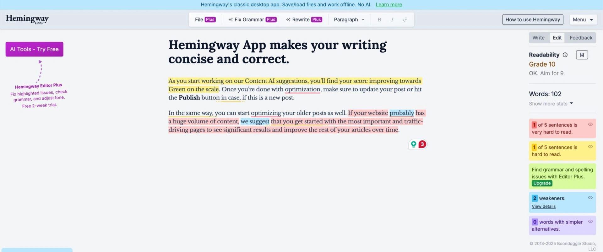 2.7 Hemingway Editor