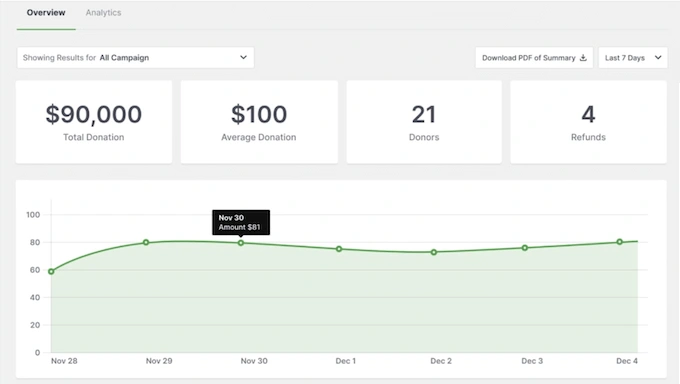 GiveWP 的报告工具同样强大。我可以轻松跟踪捐赠趋势,看看哪些活动表现最好。