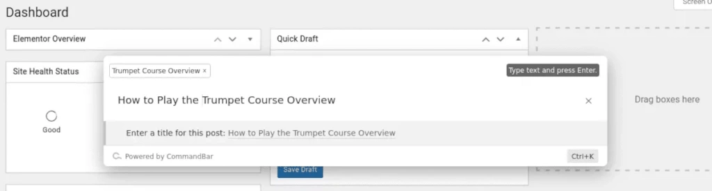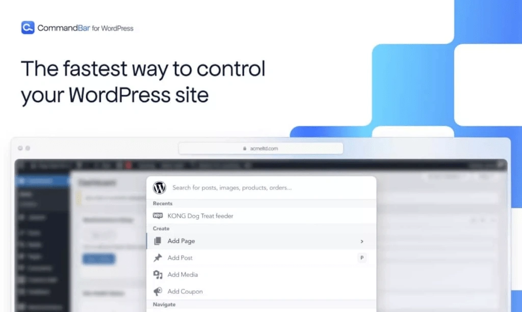 WordPress的CommandBar是一个对你的WordPress仪表板来说很简单但却非常有用的工具。安装后,它在你的管理界面的顶部增加了一个搜索栏,加上快速行动和快捷键,帮助你得到你想去的地方--比以往任何时候都快。