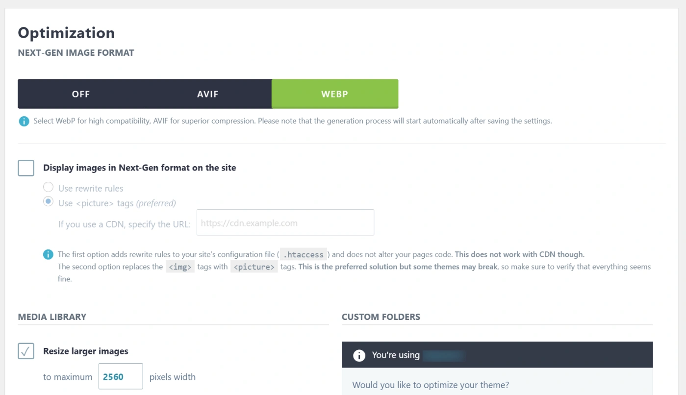 您上传的每张图片都会经过智能优化处理,在不破坏质量的前提下减小文件大小。它还会自动创建 WebP 或 AVIF 版本,帮助您满足 Google 的“使用下一代格式提供图片”的要求。