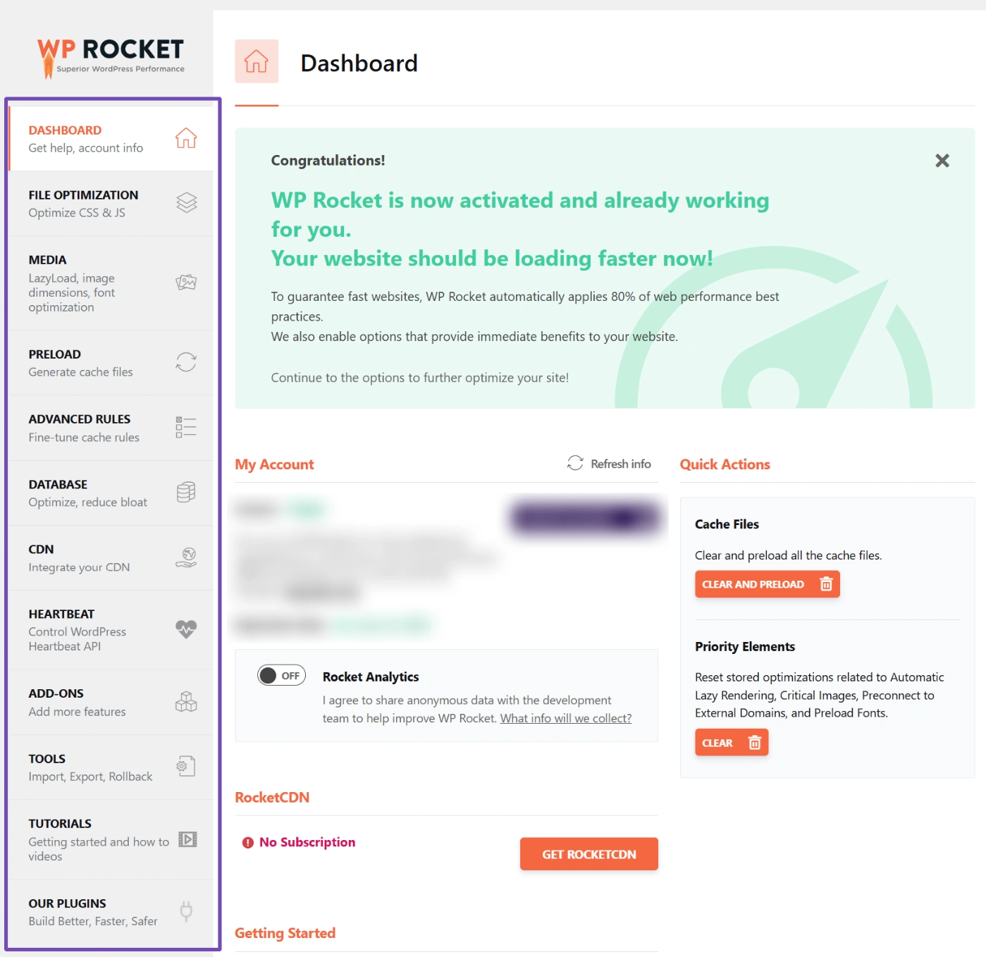 通常,你需要使用多个插件才能完成所有这些功能。WP Rocket将所有功能整合到一个任何人都能理解的仪表板中。