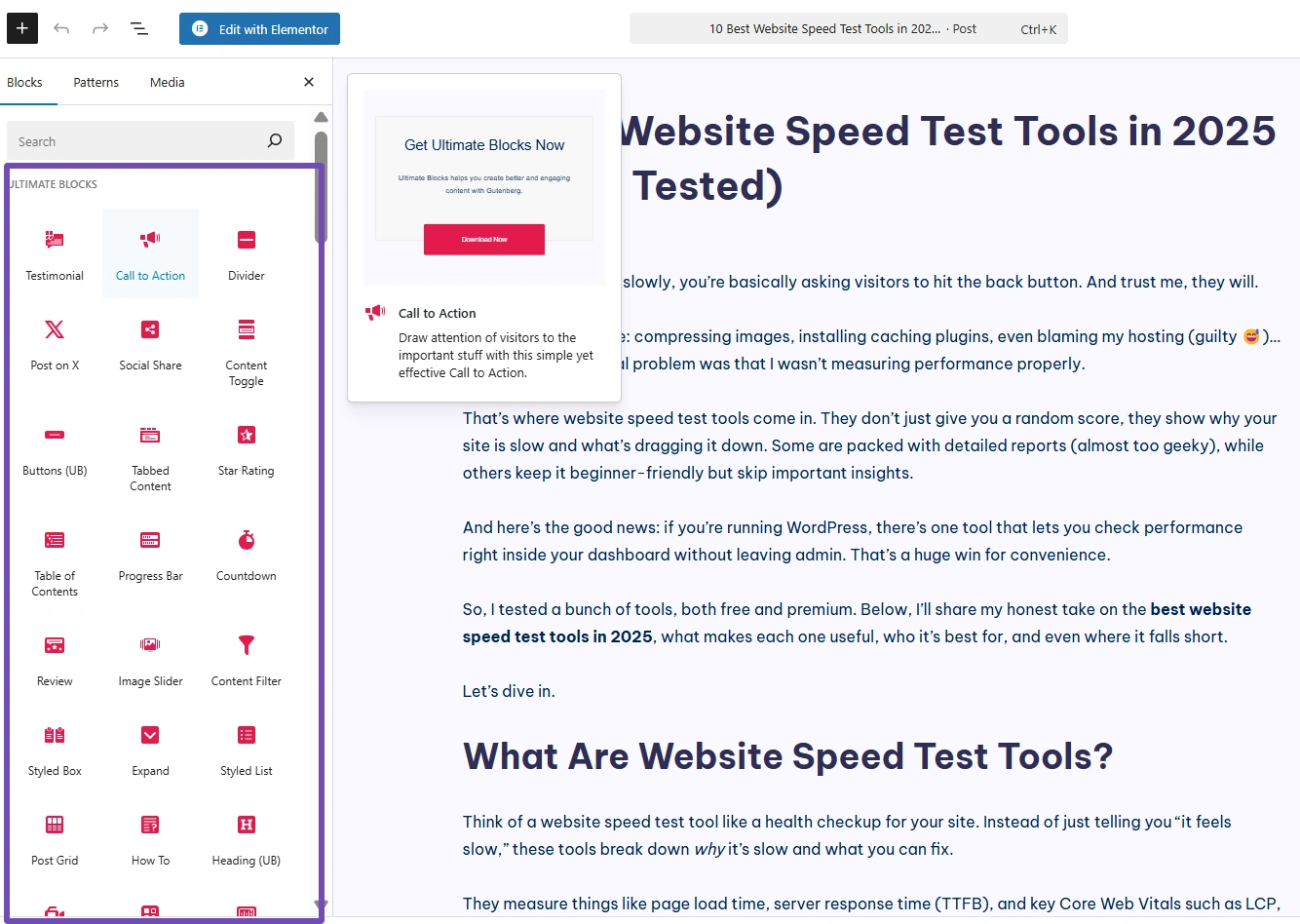 让我们换个话题,聊聊内容创作。如果您在Gutenberg编辑器中写作,并希望页面看起来更精美,Ultimate Blocks是最简单的升级方式之一。