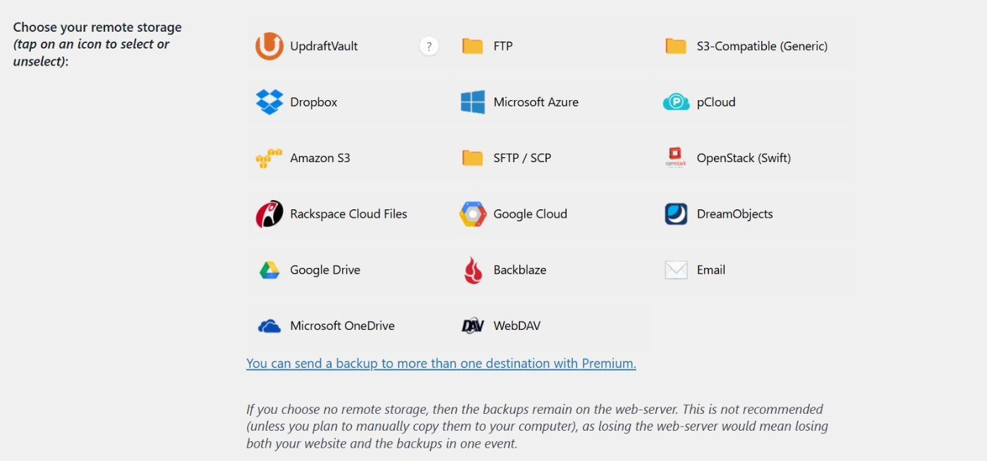 你可以选择备份计划和你喜欢的云存储,比如 Google Drive、Dropbox 或 Amazon S3。