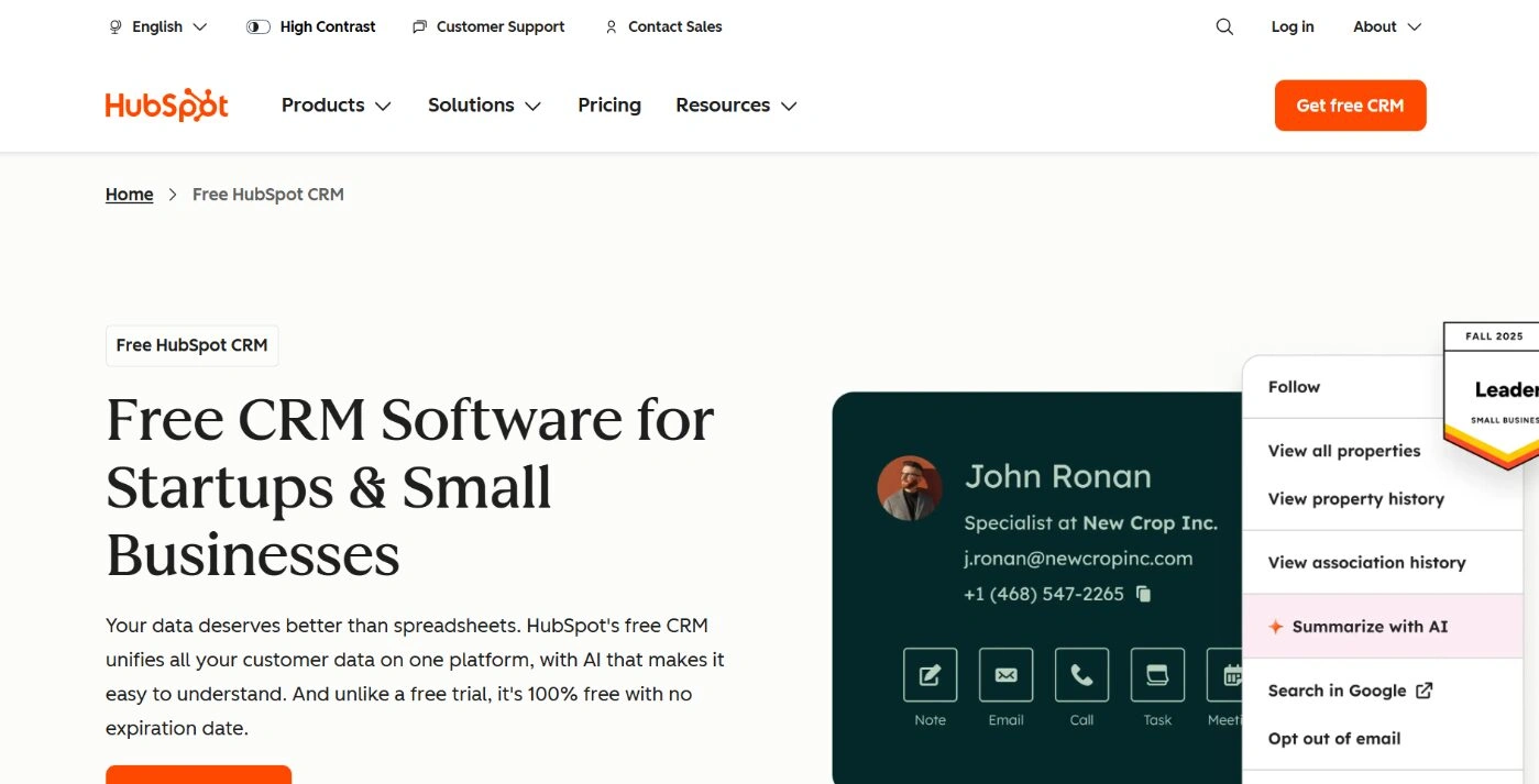HubSpot CRM 通常是小型企业采用的第一个 CRM,因为它消除了摩擦。您可以立即开始使用它而不需要付费,但仍能立即获得真正的价值。