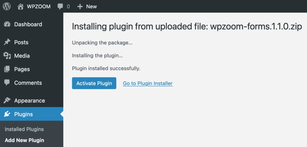 6.您的插件现在已经安装,随后需要从 WordPress 面板激活。