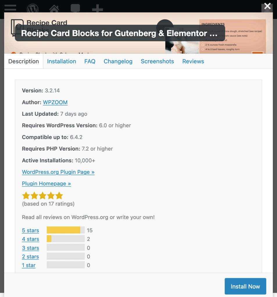 您可以点击列表中的任何插件查看更多信息,包括详细说明、截图、安装次数和用户评论。