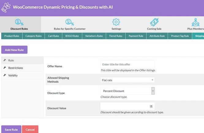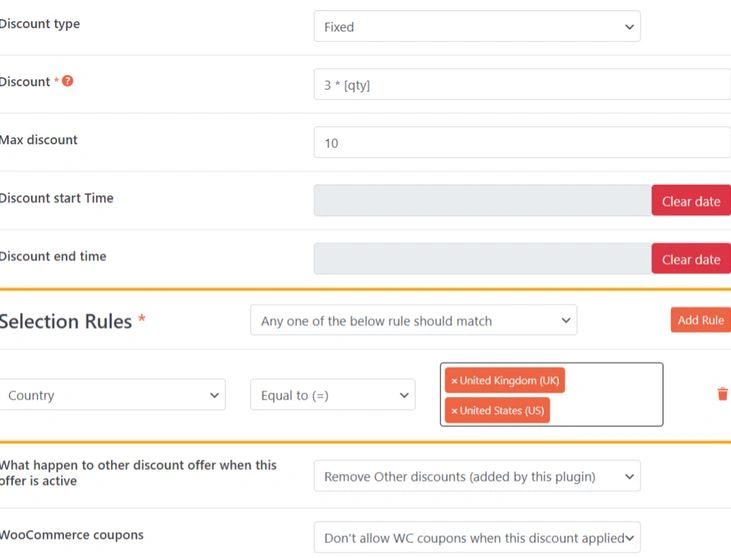 Discount Rules and Dynamic Pricing for WooCommerce: 让您可以提供基于产品的折扣。您可以将选定的产品排除在规则之外。它支持优惠券计划。专业版允许使用 URL 优惠券。