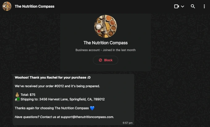 在我的演示网站上,我设置了自动WhatsApp消息,当有人下单时触发。结果非常棒——客户收到了“订单已下单”、“待处理”和“已完成”等自动更新。