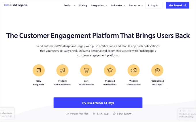🌟 为什么我推荐PushEngage: PushEngage是生命周期消息传递的强有力选择,特别是订单更新、购物车恢复和其他商店通知。您的客户可以随时了解情况,而无需您做额外工作。