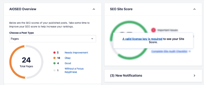 当你安装该插件时,它将自动扫描你的网站,并为你准备一份SEO报告。你可以看到是否有需要改进的页面和帖子。AIOSEO会给你建议,以促进你的网站的SEO。