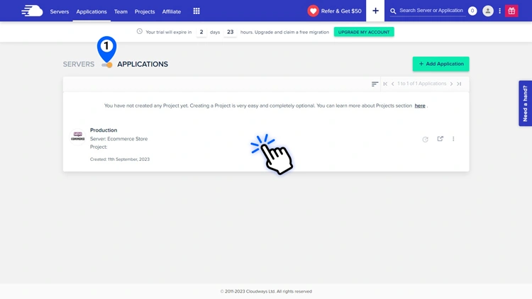 转到您的 Cloudways 仪表盘,然后选择View all Applications。然后,选择一个应用程序。