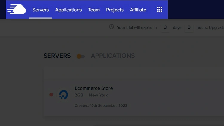 注意 为期 3 天的试用期从您启动 Cloudways服务器后立即开始。如果删除该服务器,试用版将立即结束。