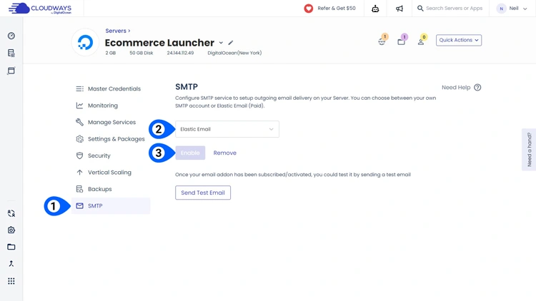 8. 升级您的帐户并设置Cloudways电子邮件扩展