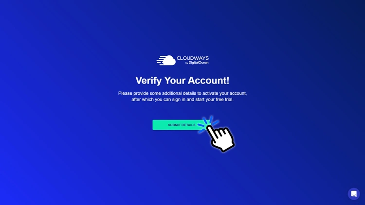 专业提示 如果您在填写信息时需要帮助,请单击屏幕右下角的小聊天图标,与 Cloudways的客户支持团队取得联系。