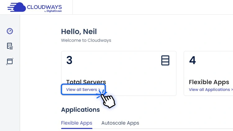 从左侧菜单中选择仪表盘以返回到您的 Cloudways 仪表盘,然后选择View all Servers。