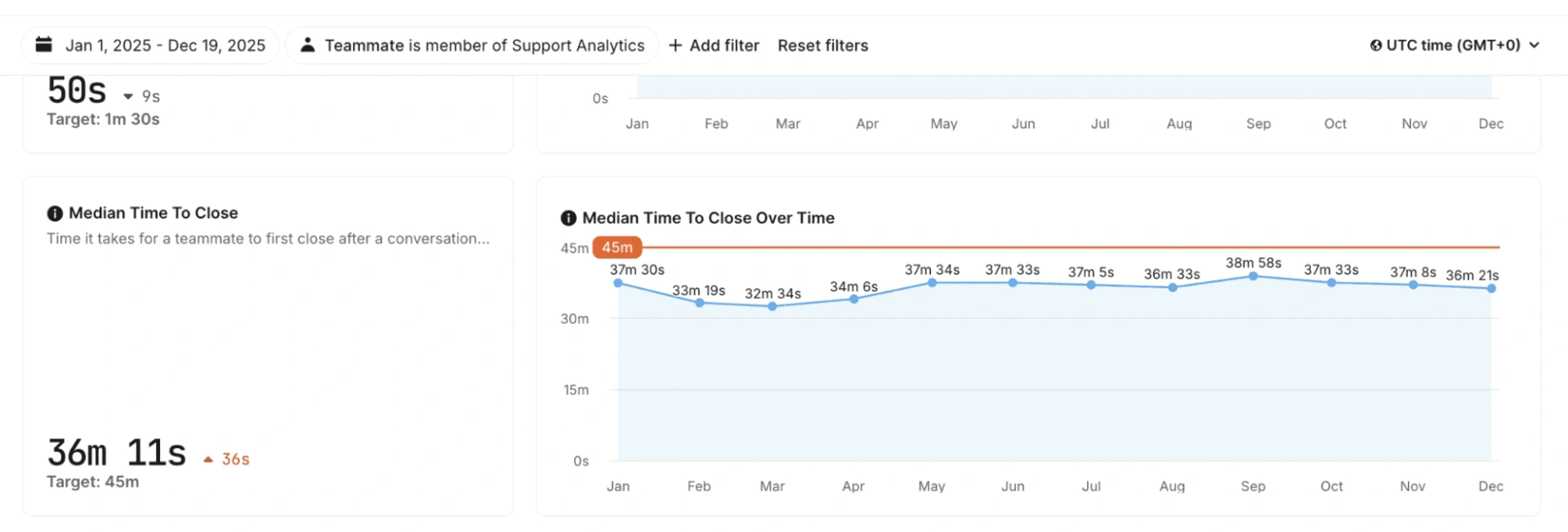 对话关闭时间中位数为36分11秒,轻松超过了我们的45分钟目标。
