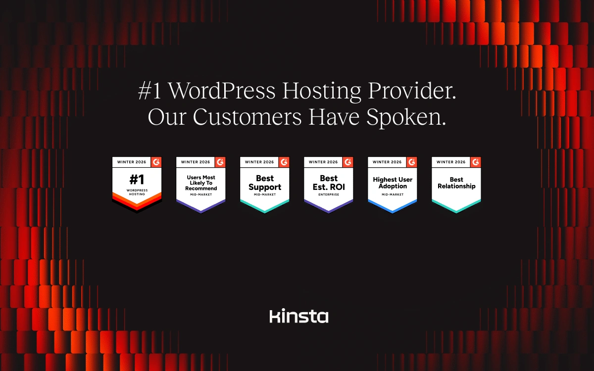 全年,Kinsta在多个类别中获得了多项G2徽章,包括最佳支持、最佳成果、高绩效者、区域领导者和Grid领导者。随着2026年的开始,还获得了更多认可,包括用户最愿意推荐、最佳用户采用和最佳关系。