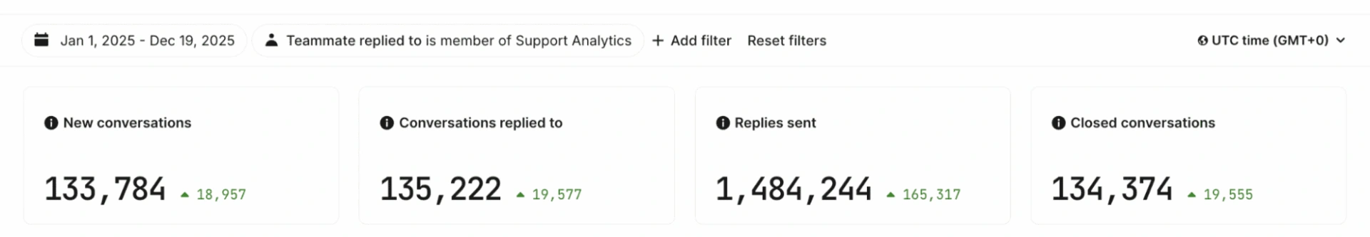 这些对话产生了超过140万条回复,其中134,374个对话已关闭。这既反映了客户群的持续增长,也体现了我们始终坚持彻底解决问题而非草率应对的宗旨。
