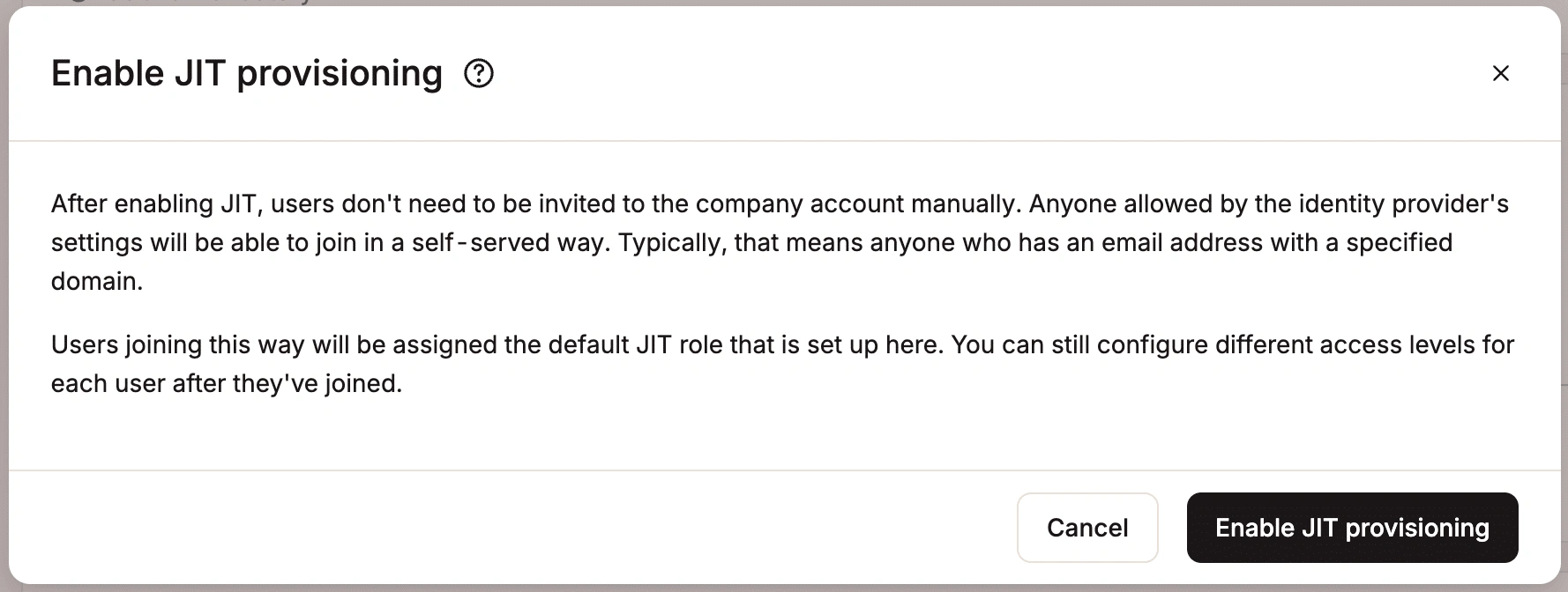 MyKinsta 支持实时(JIT)配置功能,允许您通过 SAML SSO 首次登录时自动创建新的 MyKinsta 用户账户。
