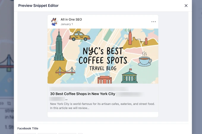 你希望你的文章在Facebook或X(Twitter)上分享时看起来很棒。两个插件都有“社交”标签,但我发现AIOSEO的预览更准确。