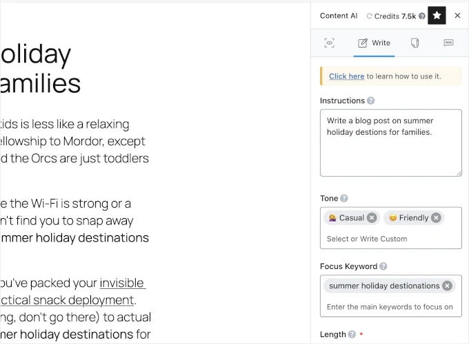 只需描述你的内容,它就会帮你完成剩下的工作。这能帮助你提高 10 倍的写作速度,而且无需离开 WordPress 仪表盘。
