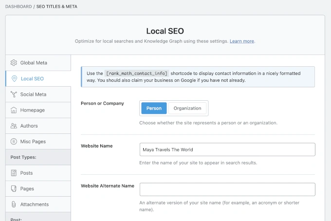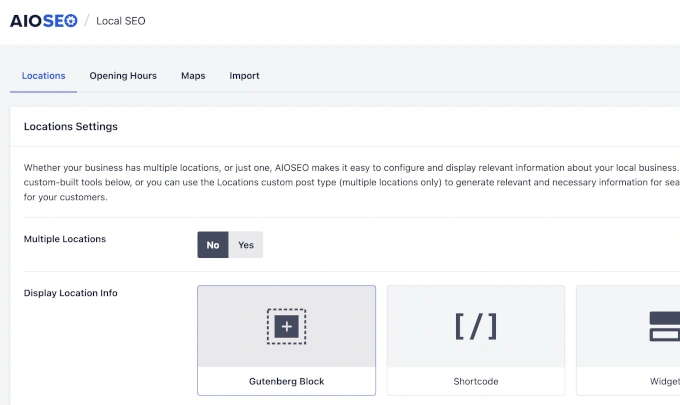 AIOSEO 提供了一个全面的、向导驱动的本地 SEO 模块,可以简化复杂任务。设置 Google My Business 非常简单,包括 Google Maps 集成。