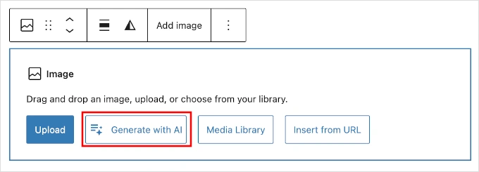 只需在你的内容中添加一个图片块,然后点击“用 AI 生成”按钮。然后描述你想要添加的图片,它就会为你生成。
