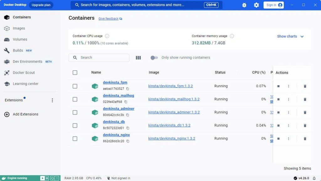 Docker 是一款应用程序,它允许你为网络应用程序和网站构建容器(虚拟环境)。虽然本地程序内置了类似的功能,但 DevKinsta 却将其比作另一个程序。