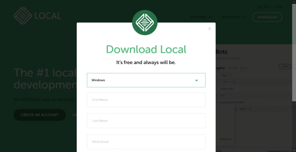 要安装 Local,您需要访问 LocalWP 网站并点击下载按钮。
