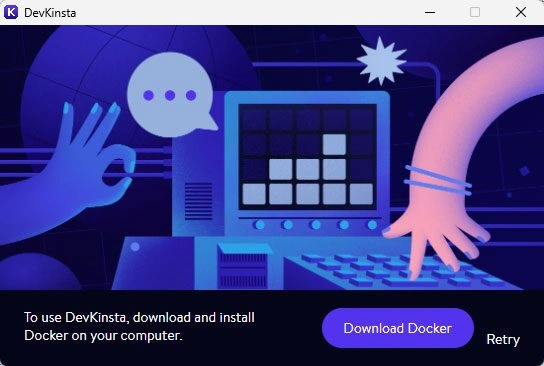 不同之处在于,DevKinsta 的安装文件要小得多,只有 80MB 左右。不过,当你开始安装程序时,程序会额外要求你安装 Docker,因为它需要 Docker 才能运行。