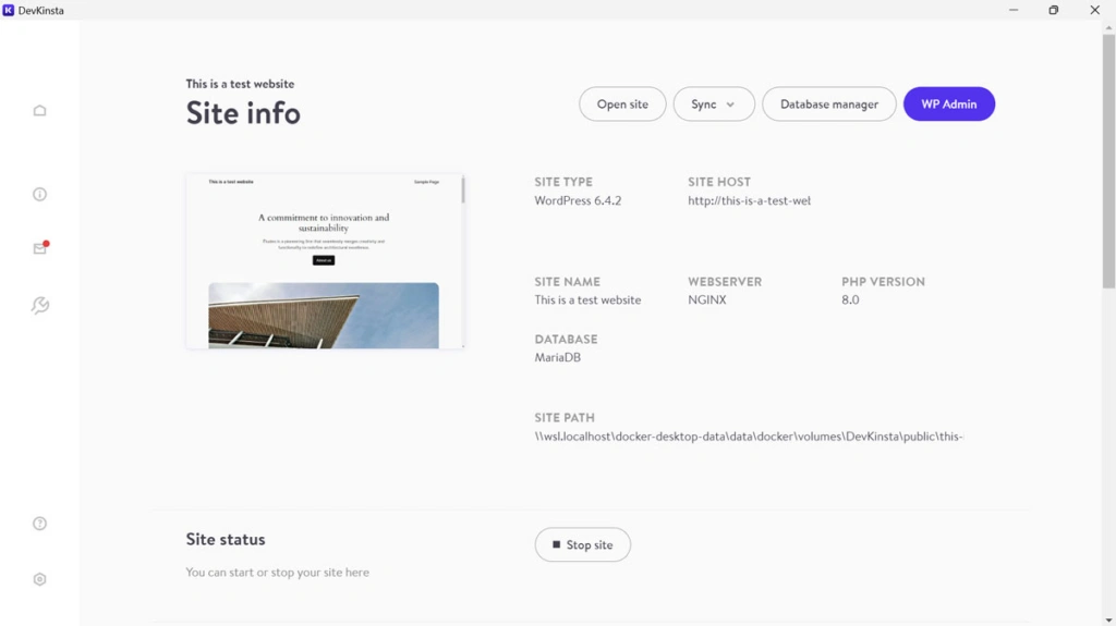 一旦建立好网站,Local和DevKinsta会为您提供不同的管理选项。