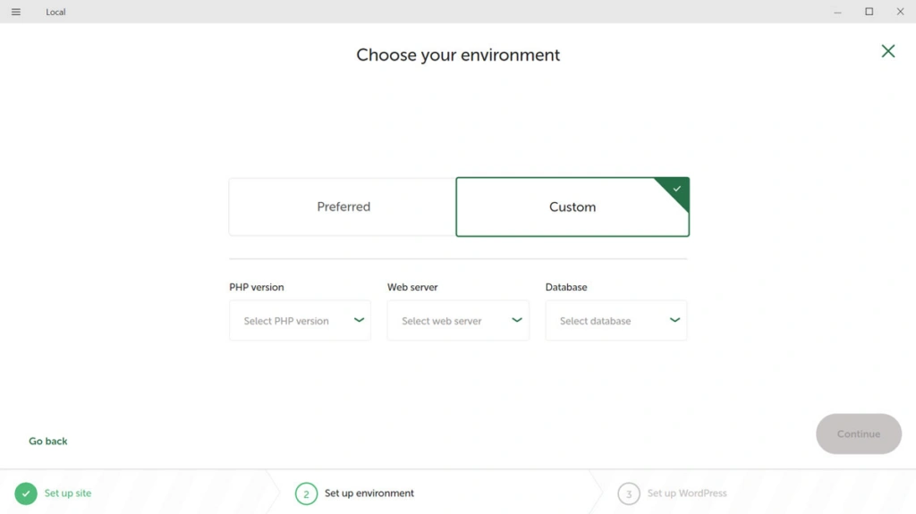 您仍然需要提供名称、域名、PHP 版本、数据库名称等信息。不过,完成后,您可以在其指向的位置放置任何您想要的东西,并随心所欲地建立网站。这在Local也可以实现,但需要使用变通方法。