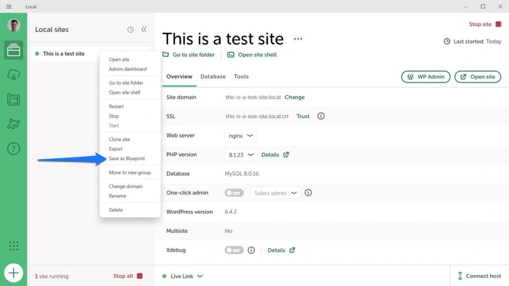 然后是蓝图。这意味着你可以保存整个网站的配置,包括主题和插件,并在开发新网站时重复使用。这可以节省大量时间,尤其是在你建立大量类似网站的情况下。