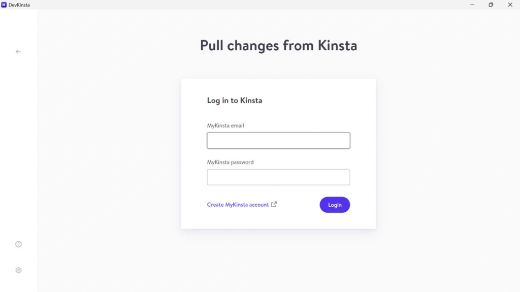 只需点击并选择推送或拉动即可。DevKinsta 会要求您登录Kinsta 账户。