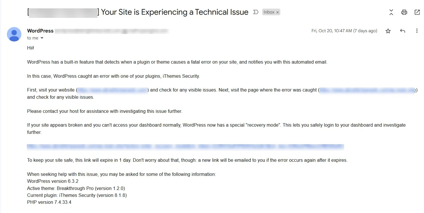如果插件或主题导致问题,您可能会看到类似这样的错误消息: