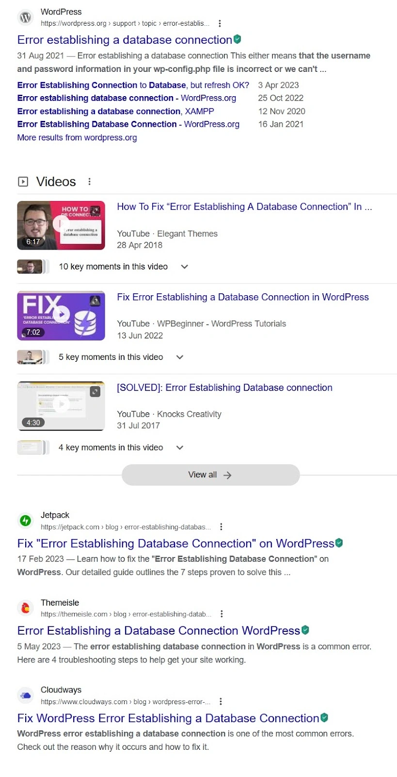 最后,谷歌搜索你遇到的错误可能会有收获。请确保搜索的是具体的错误,而不是“WordPress坏了”。你可能会找到博客文章、视频或WordPress论坛帖子的链接,这些将在排查WordPress错误时帮助你。