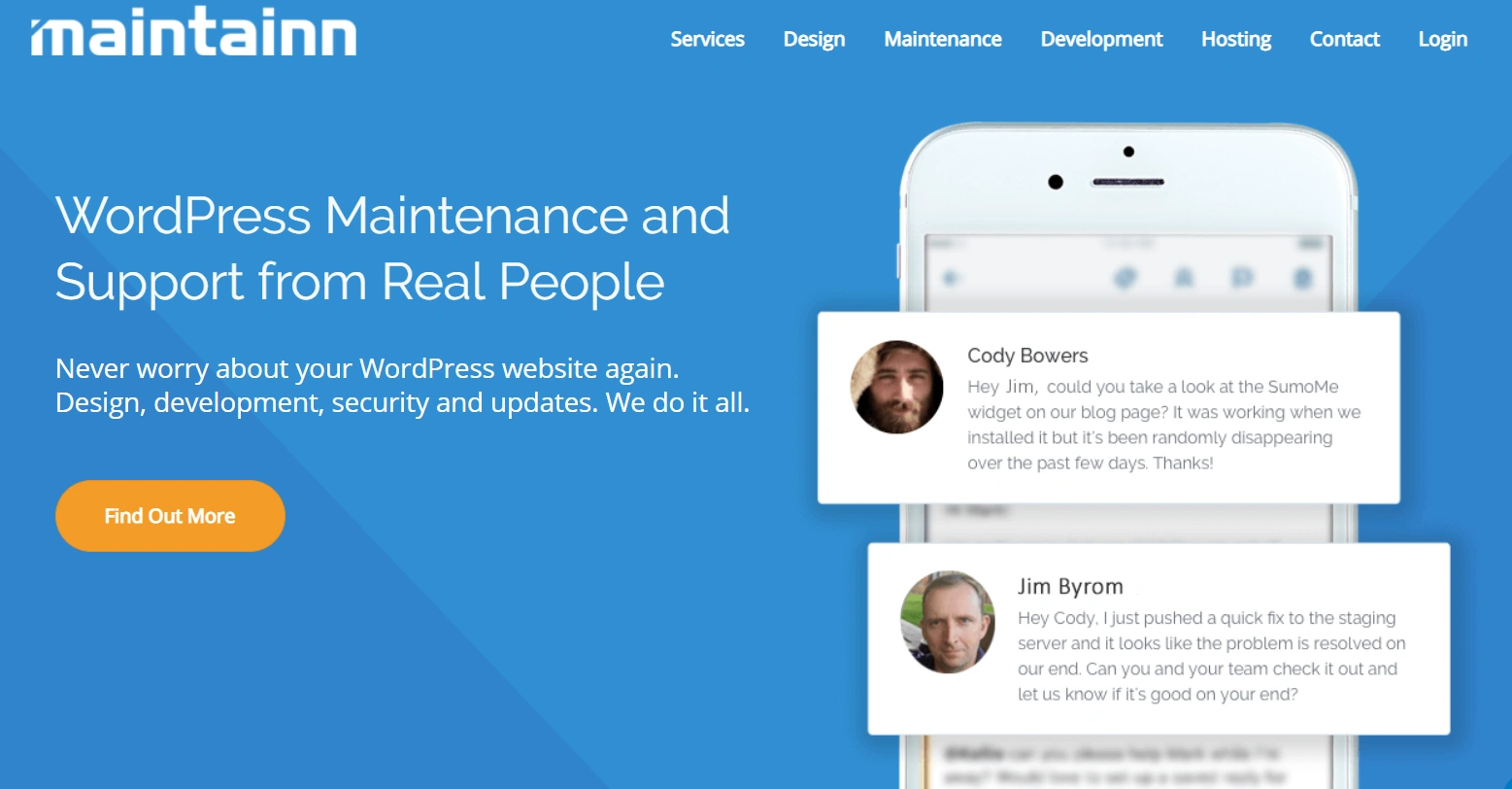 作为市面上最受欢迎的WordPress维护公司之一,Maintainn由WordPress专业人士组成的团队会持续关注你的网站,所以你不需要自己操心。技术支持周一至周五提供,但如果你在任何时间需要帮助,总有人接听你的电话。