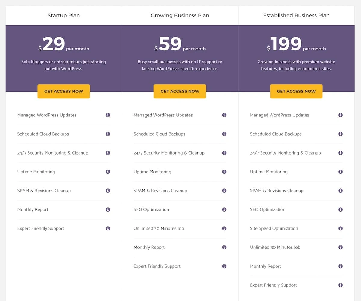 另一个很棒的服务,帮助你保持网站新鲜和健康。每月付费,你可以在多个领域得到保障:开发、安全、网站更新、专家支持等等。